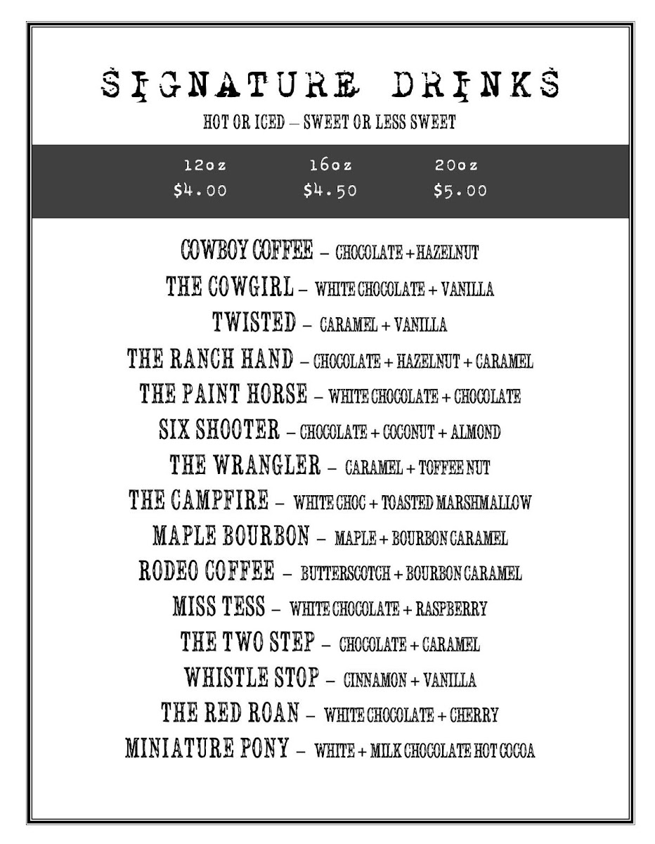 The Pony Expresso Menu